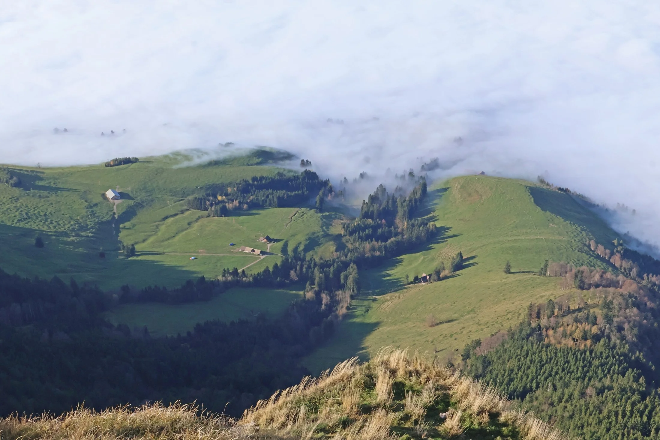 La masse des touristes est restée près des gares et des restaurants. En nous éloignant, nous profitons du calme des pâturages environnants.