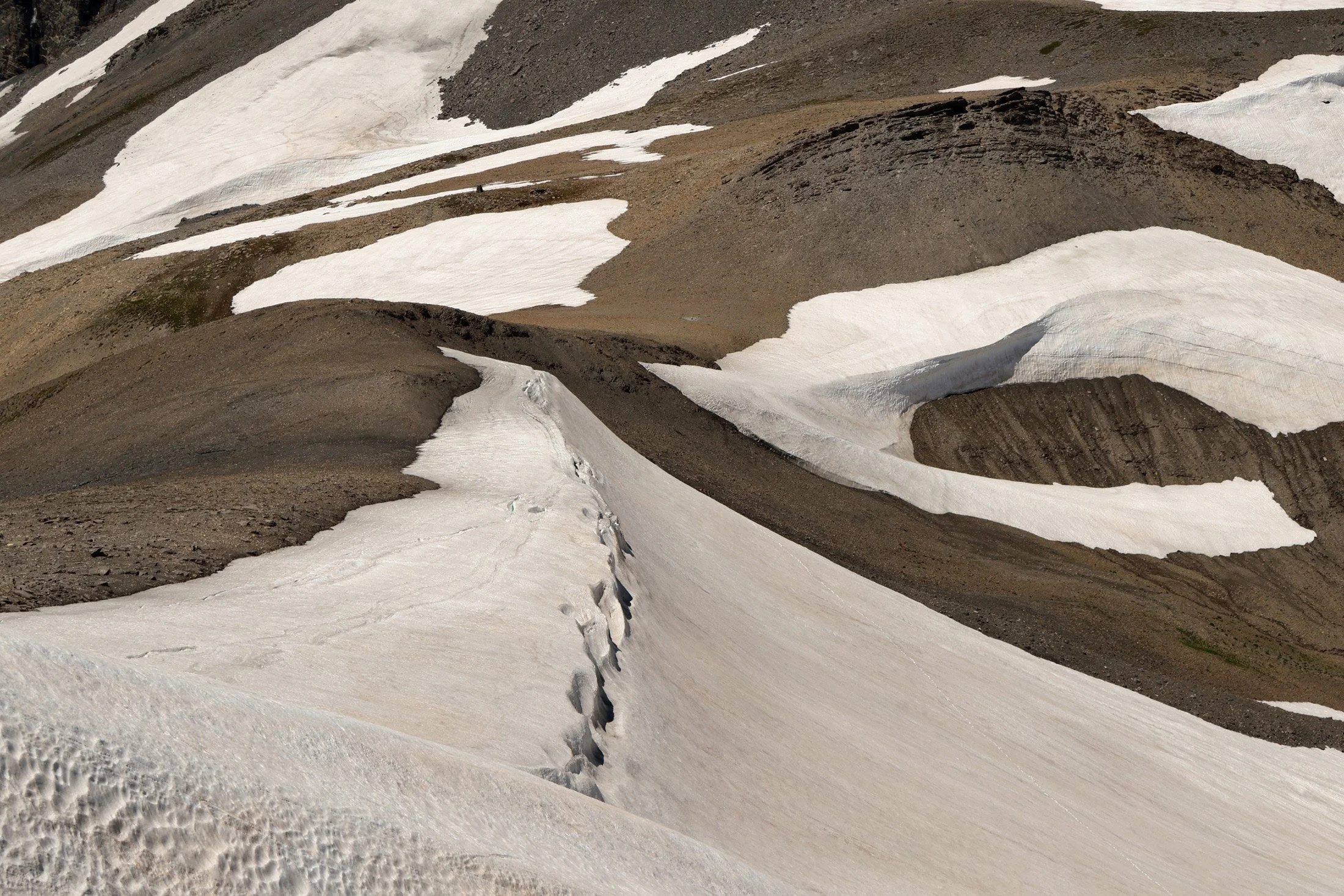 A la descente, nous profitons de ce décor minéral où la neige n’a pas encore complètement fondu, le spectacle est impressionnant .