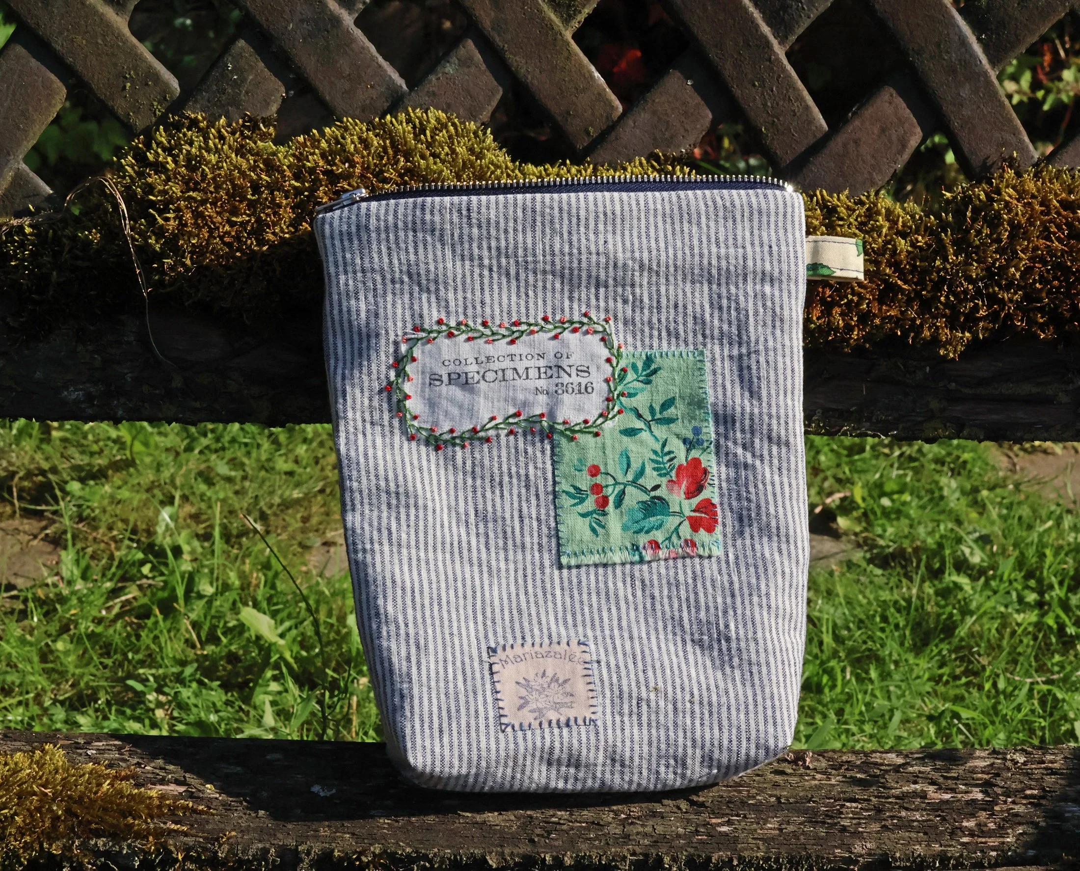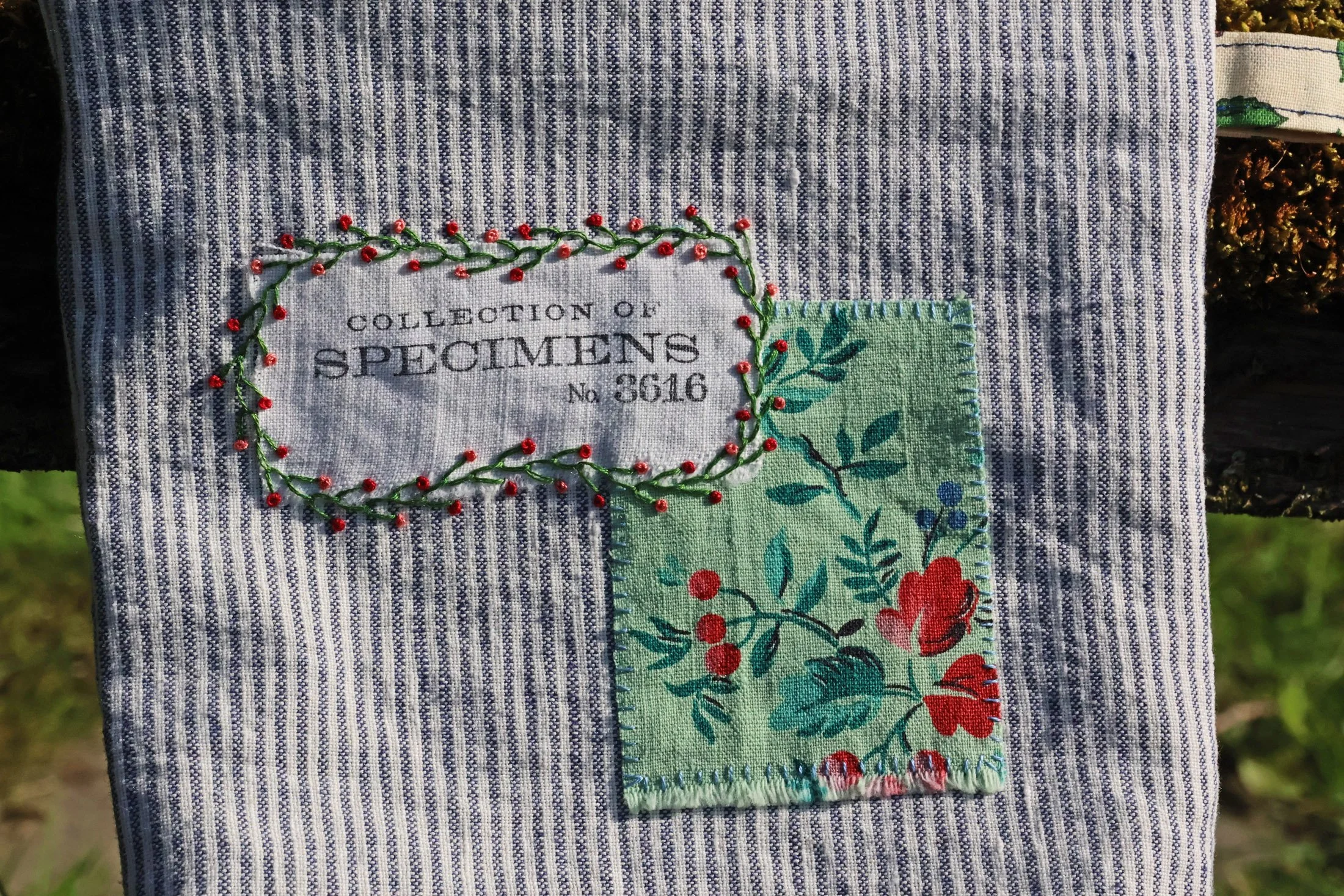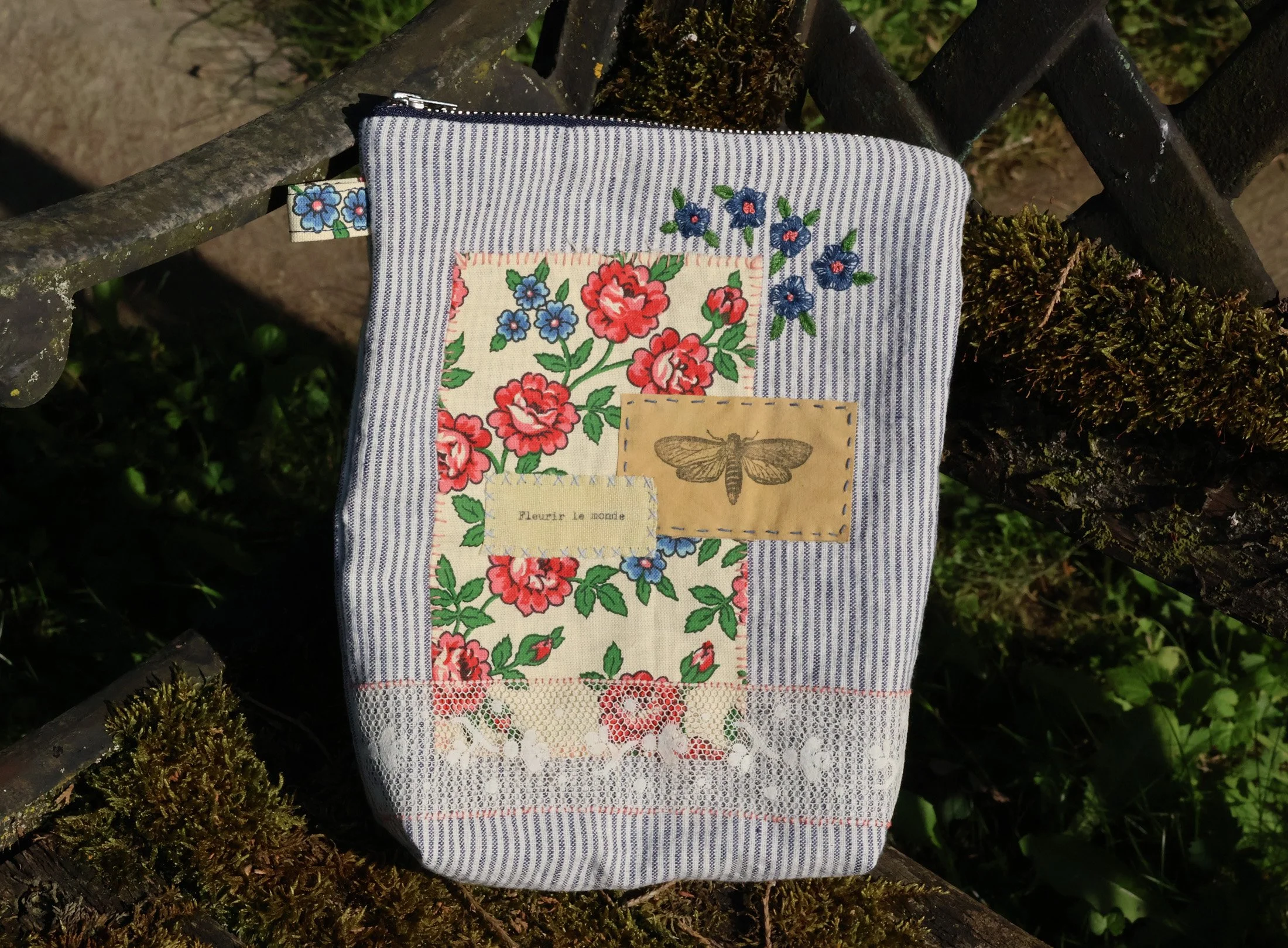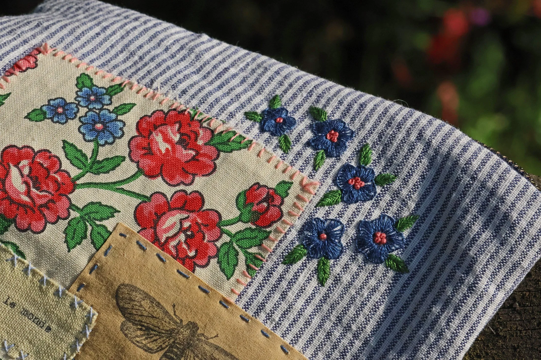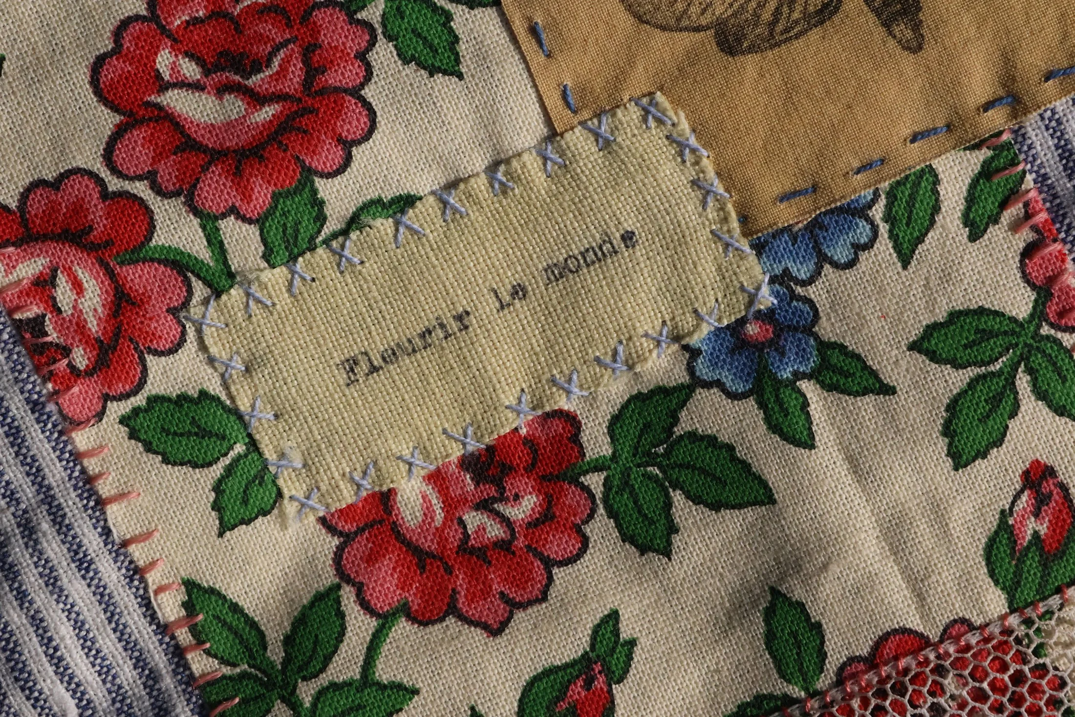 … une petite broderie en rappel du motif fleuri du tissu