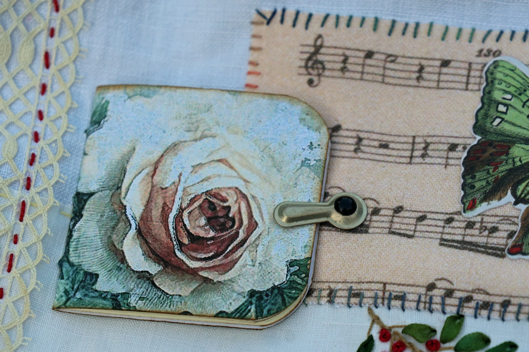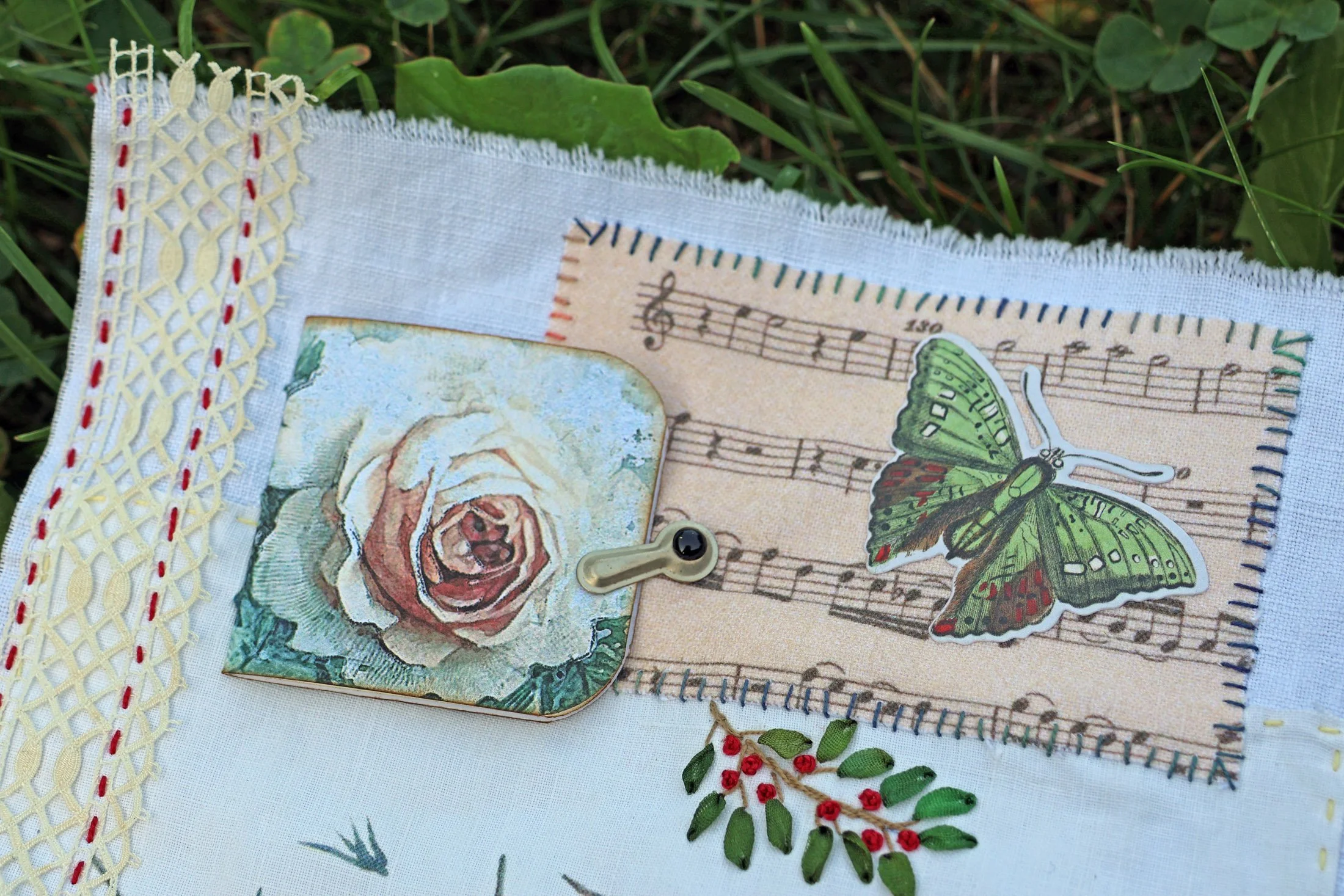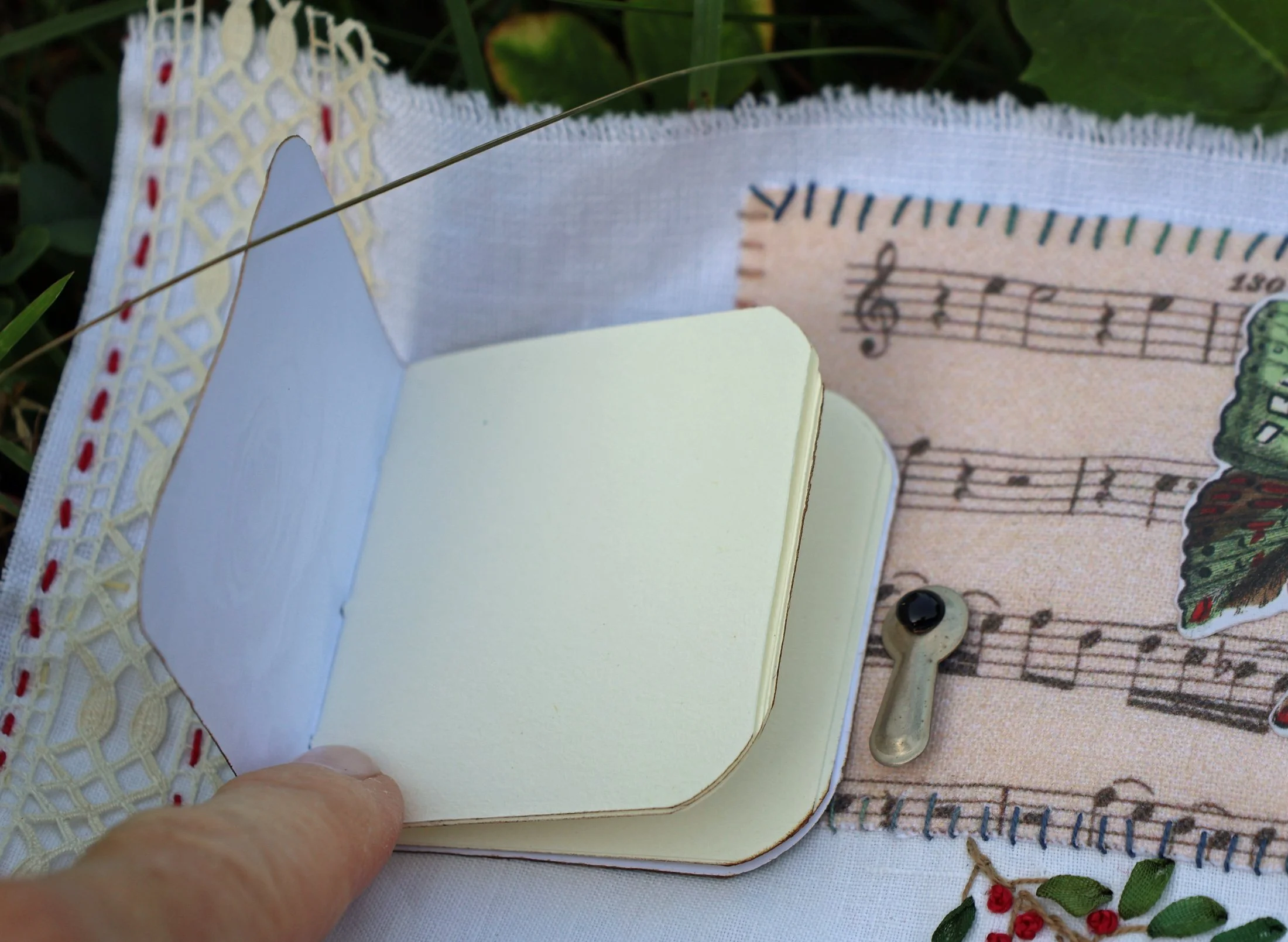 Une page de livre ancien également imprimée , agrémentée de fleurs rebrodées