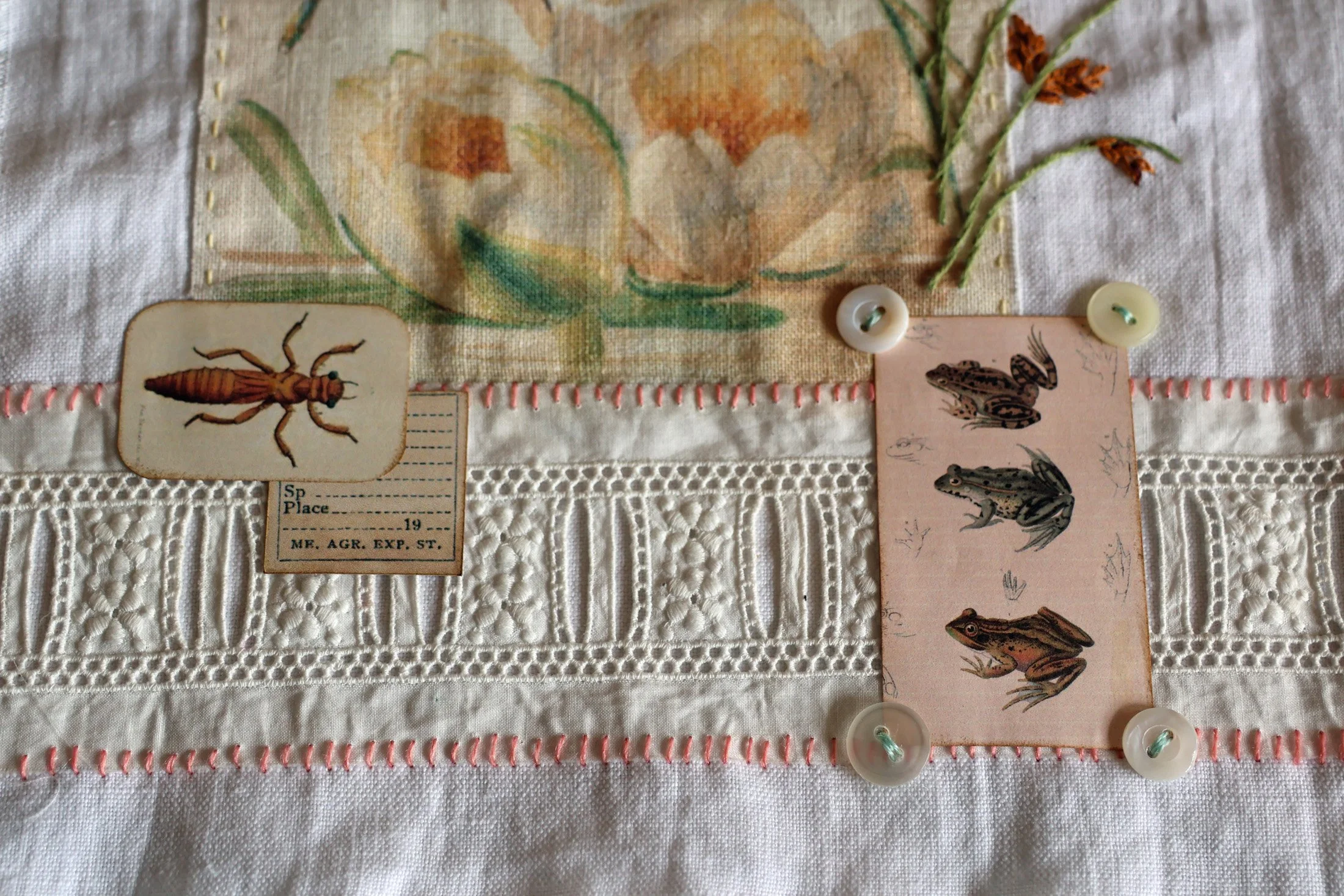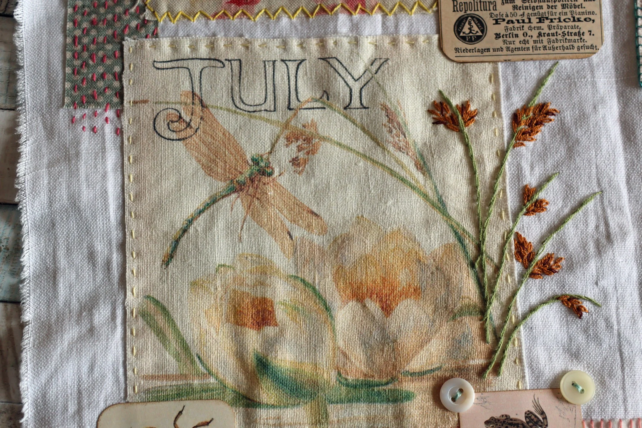 Inspirée du journal 2024 de Roxy Creations, j’ai repris le thème des belles pages du livre de Edith Holden. Pour ces deux mois, les nénuphars et leur libellule sont à l’honneur, souvenir de cet été où nos premières fleurs de nénuphars ont fleuri dans notre petit bassin et où les visites des libellules nous ont enchantés.