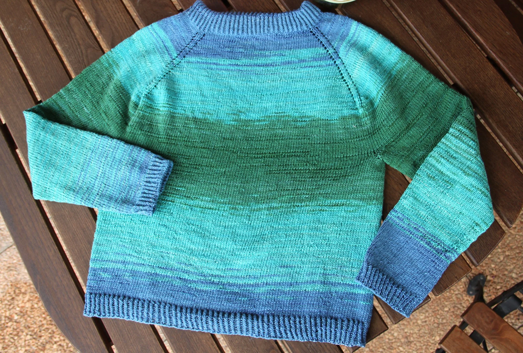 J’ai profité d’une escapade vers le sud (vous en saurez bientôt plus) pour tricoter dans la voiture et terminer un pull qui traînait dans ma corbeille.