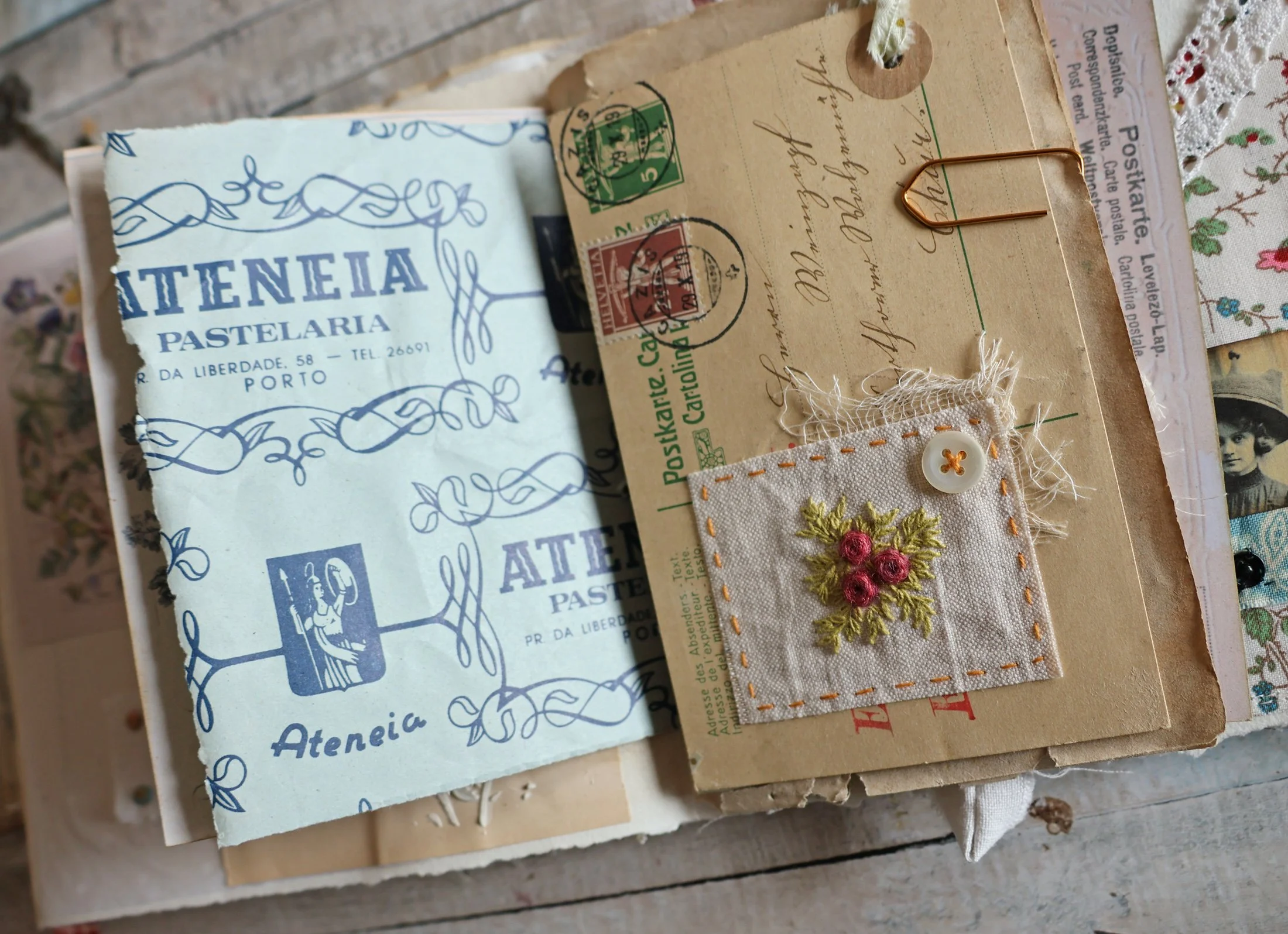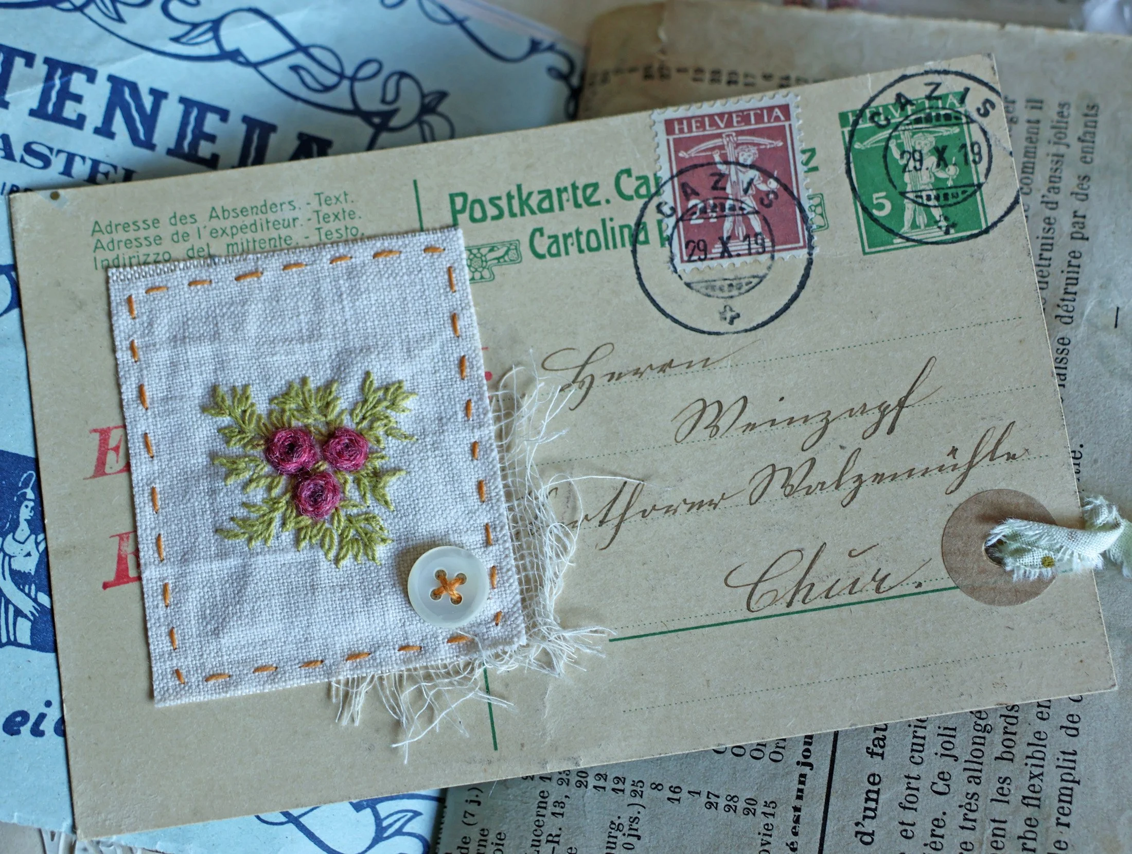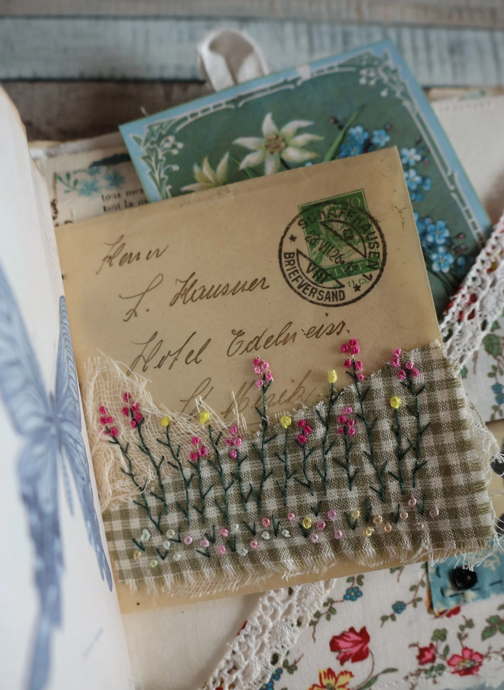Et cette petite enveloppe brodée dont je suis très fière, ma page préférée du livre!