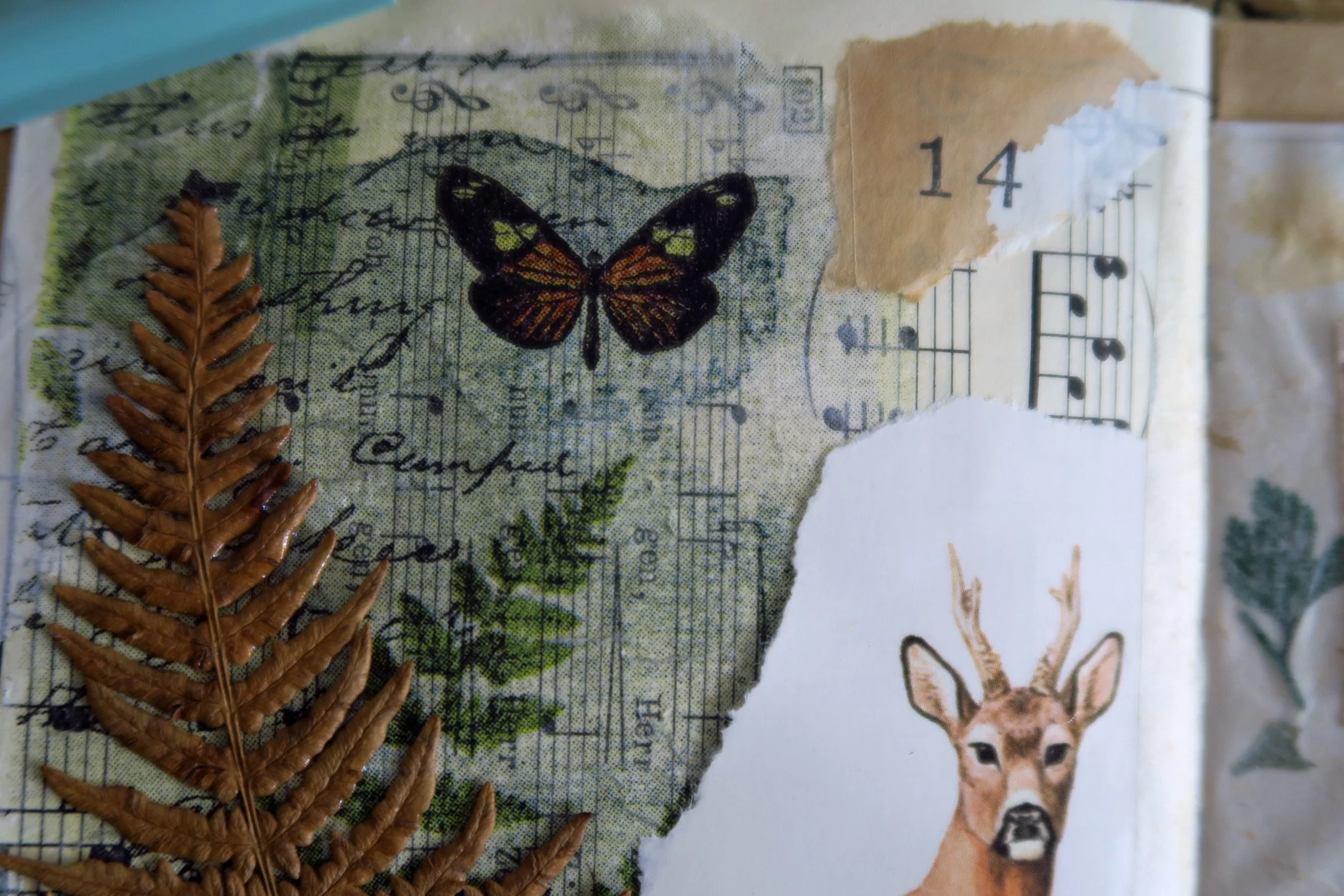 Après la page 10, je n’avais pas envie de remplir ce beau feuillet d’une enveloppe envoyée par une copine (qui se reconnaîtra…) et je l’ai décoré en légèreté avec un morceau d’un très joli papier peint de William Morris.