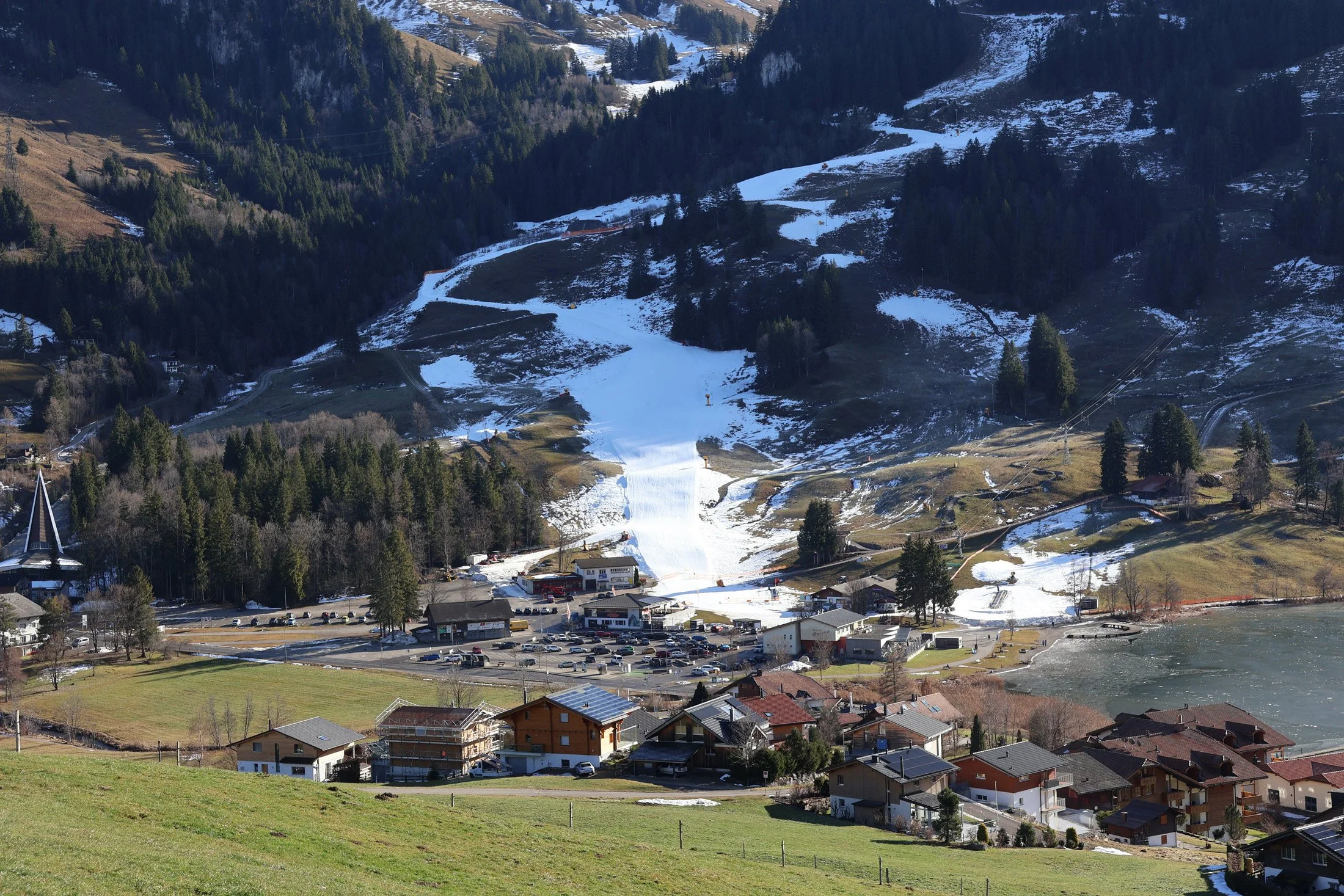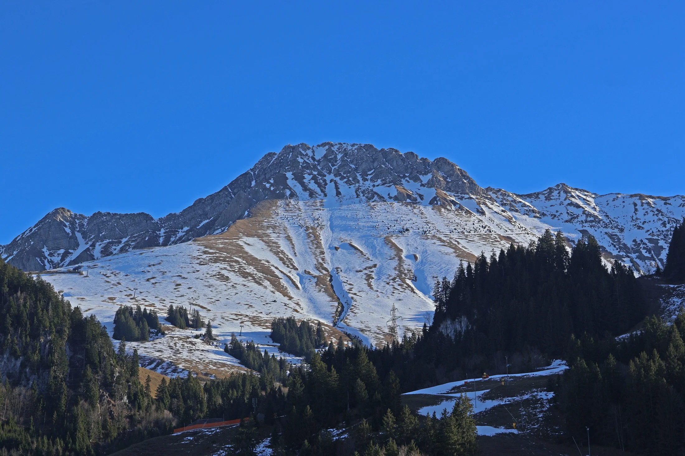 Nettement moins de charme sur notre gauche où se trouvent les pistes de ski et les parkings des remontées…