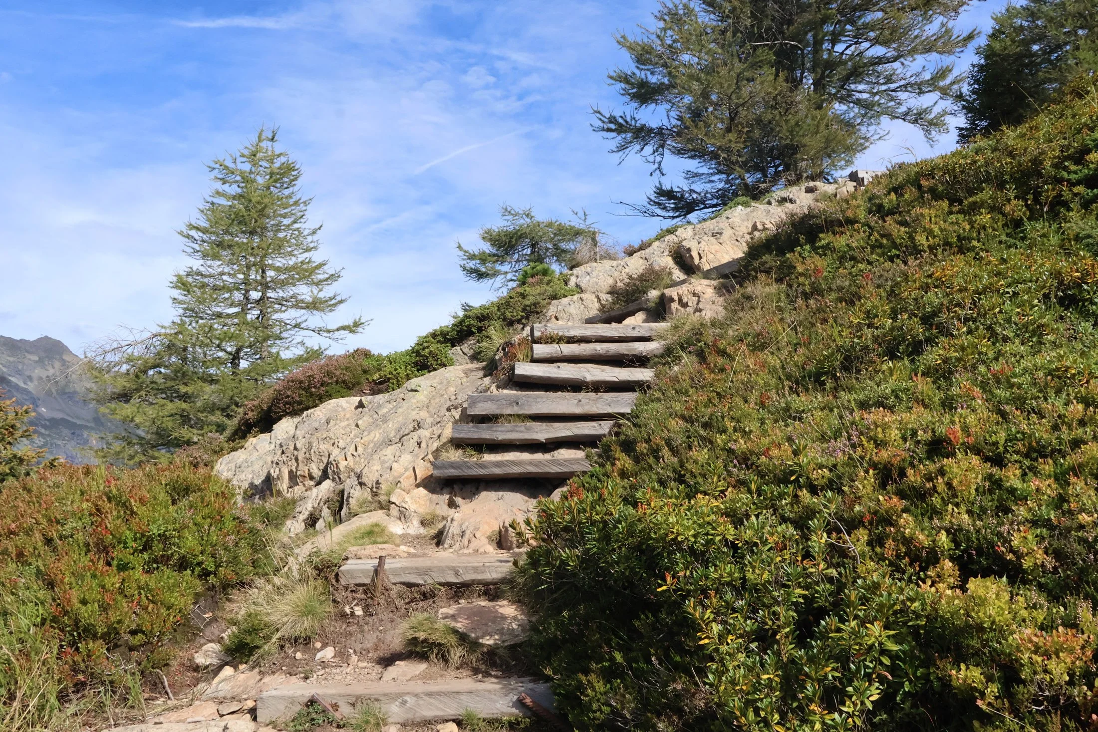 Pas la peine de trop s’apitoyer, ça ne changera pas le cours du changement climatique, autant profiter de ce beau sentier ensoleillé qui monte vers l’Aiguillette des Posettes!