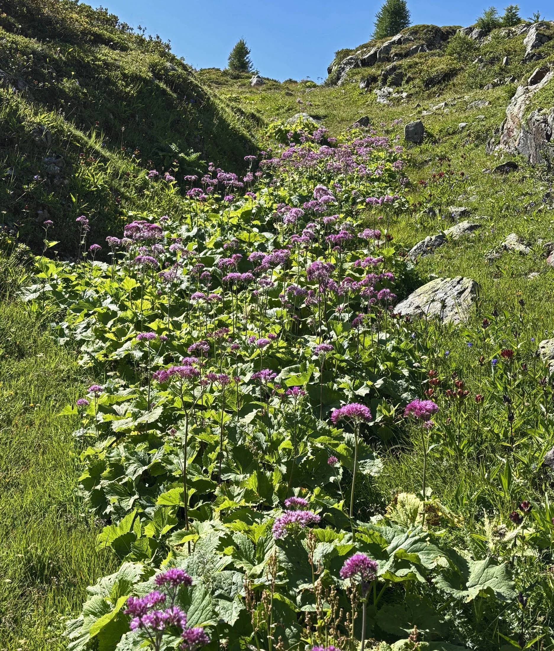Un peu plus bourrue, moins délicate que les fleurs précédentes mais généreuse par son feuillage, l’adénostyle foisonne en altitude en ce mois d’août.