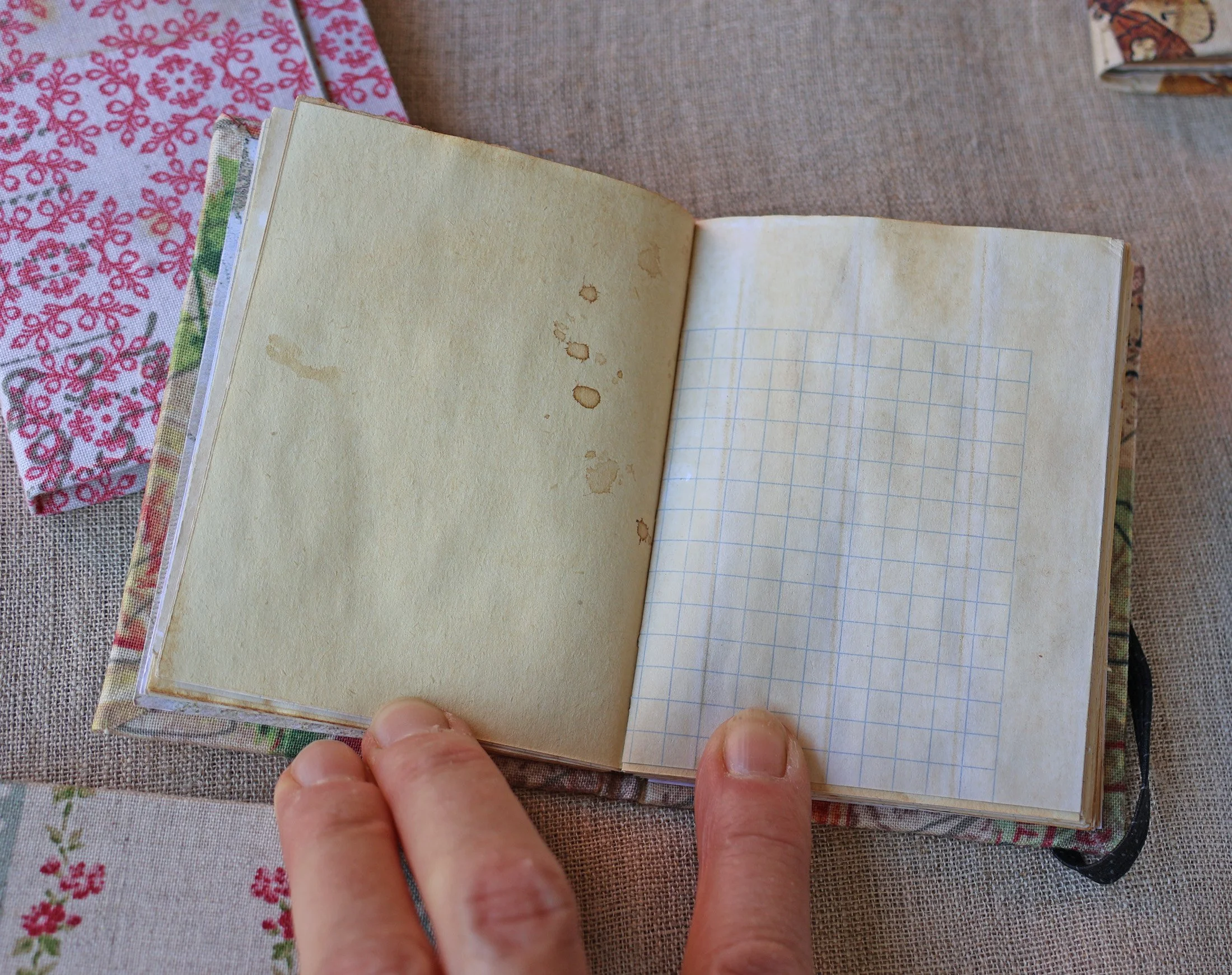 Pour les pages, j’ai utilisé différents papiers: des restes de feuilles de cahiers d’écolier.