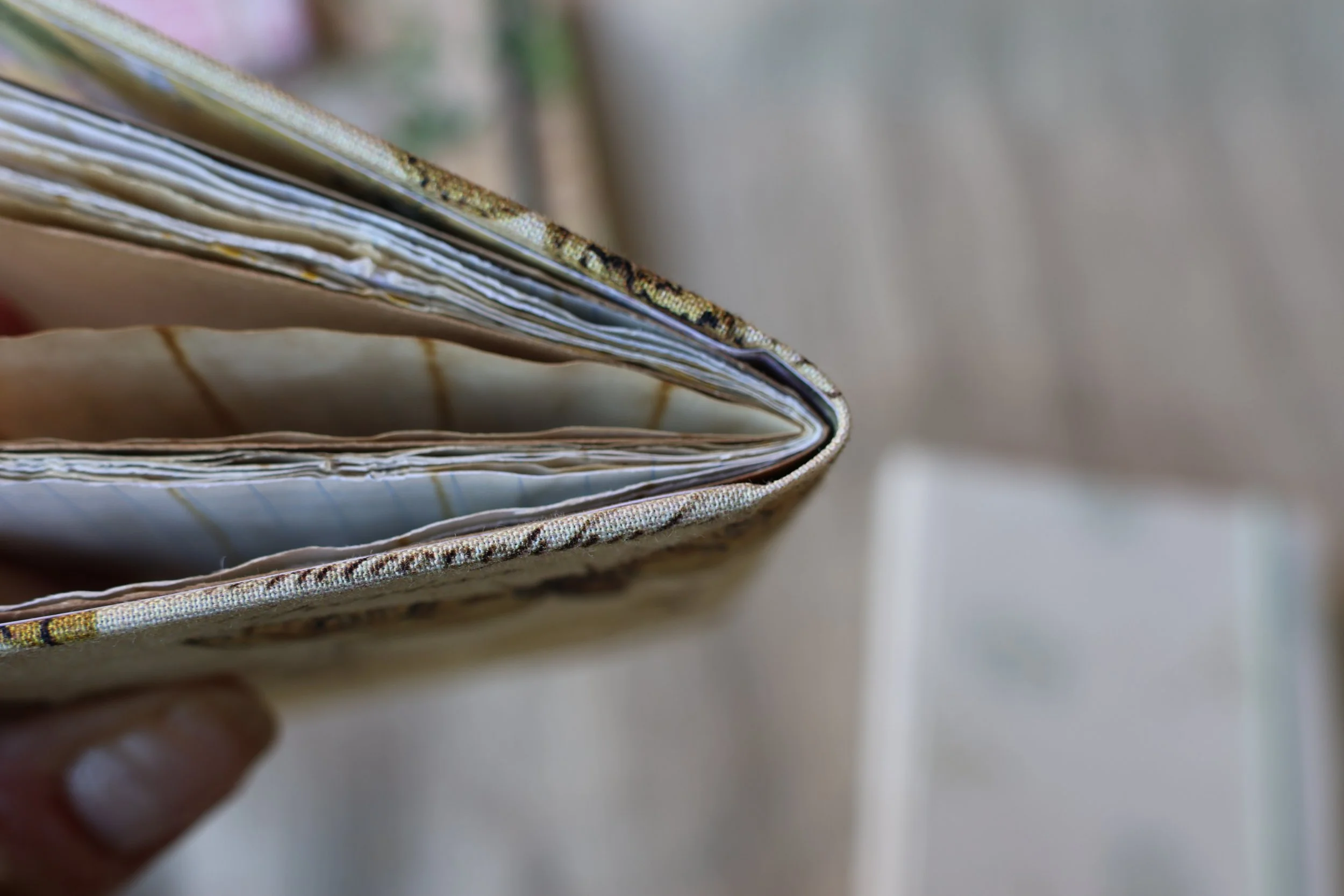 Durant mes vacances, quelques petits carnets ont fleuri sur ma table. J’avais emporté à la montagne le matériel nécessaire à la reliure amateure et je me suis amusée.