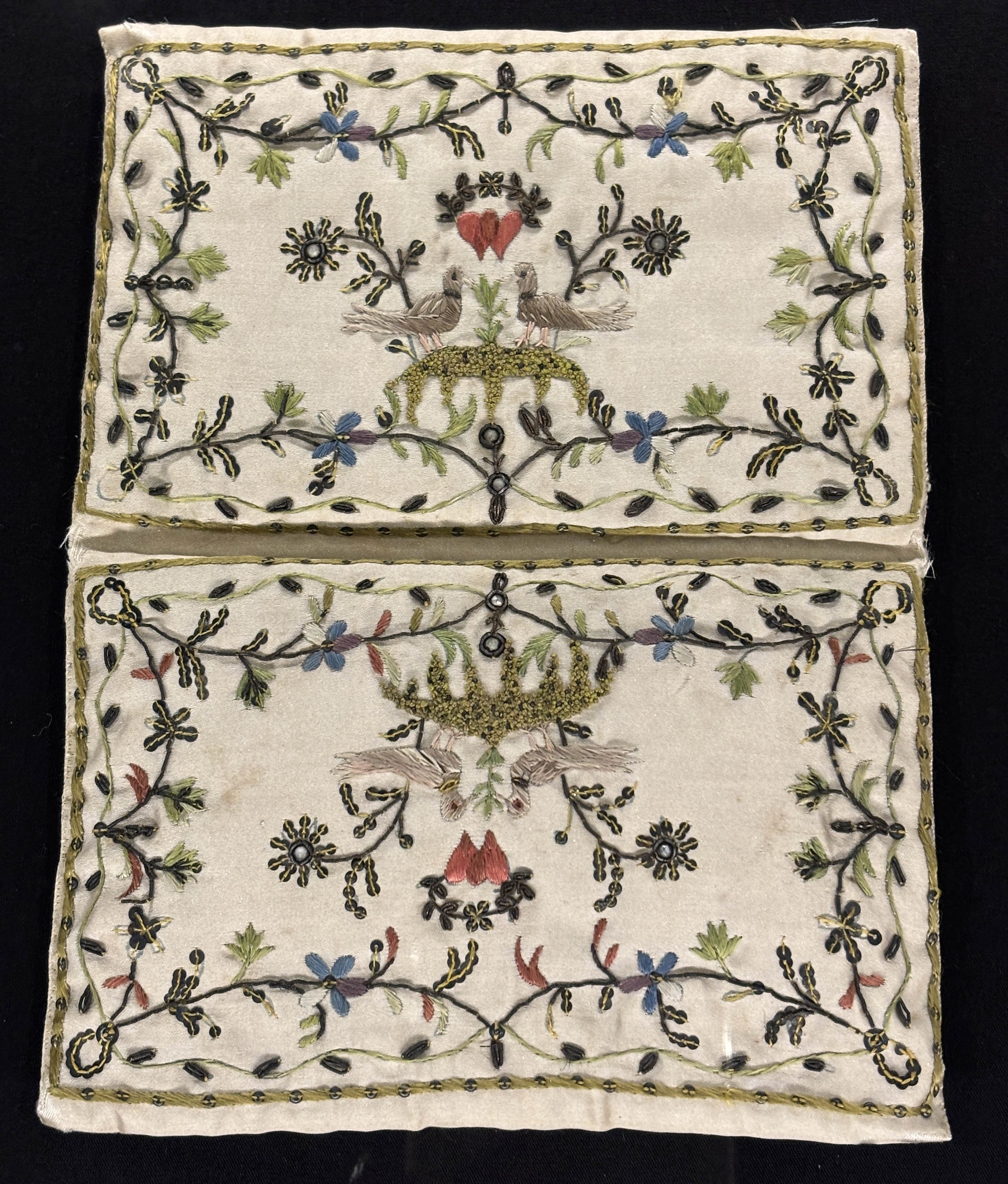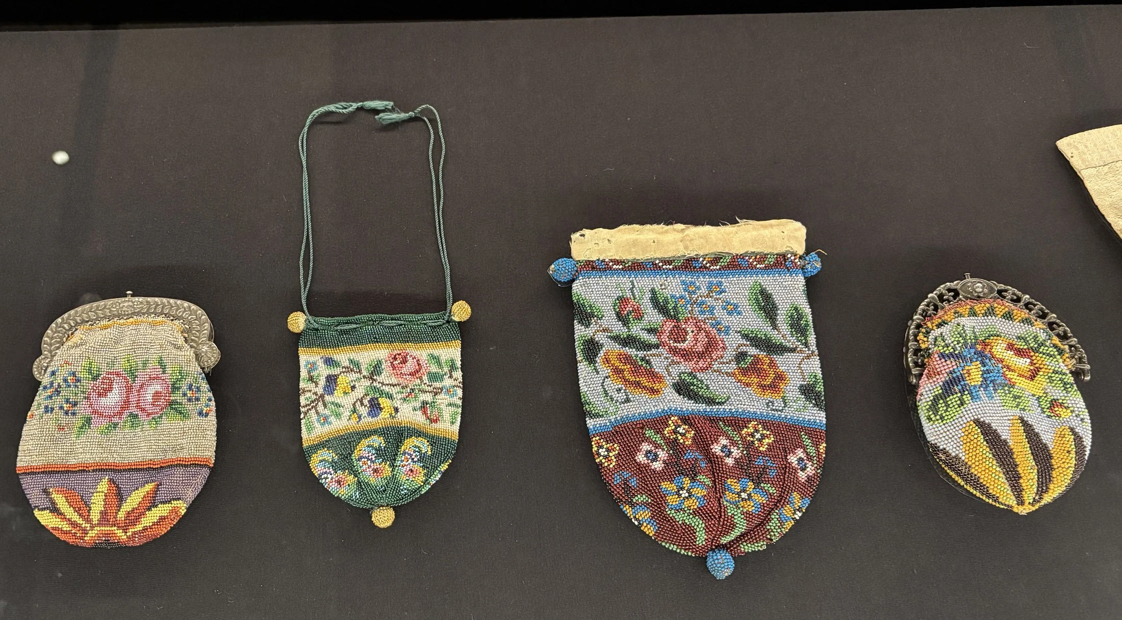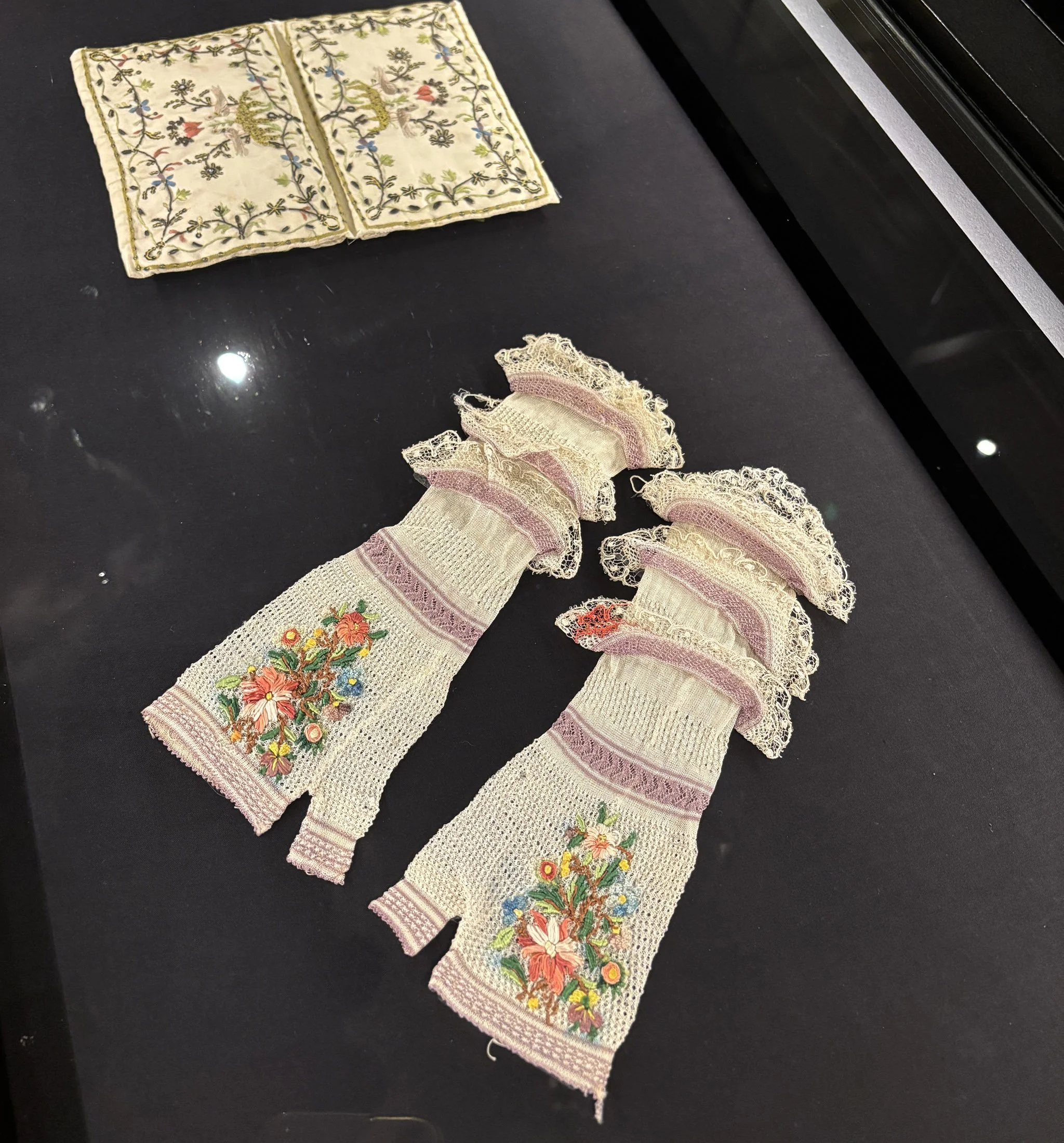 Différents accessoires, comme cette pochette de mariage ou ces gants.