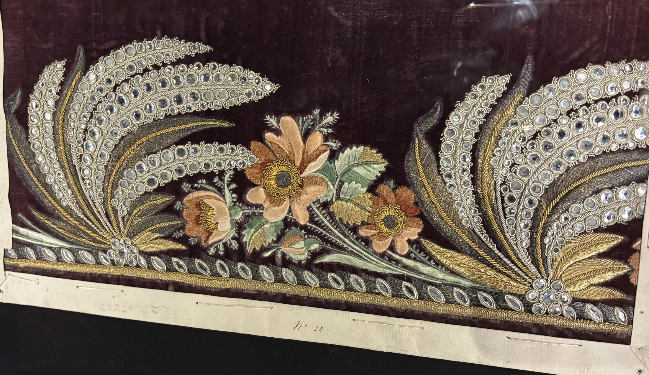 On revient vers les étoffes: après les motifs réalisés grâce aux méthodes de tissage, voilà maintenant, au XIXe, qu’on travaille les embellissements grâce aux impressions.