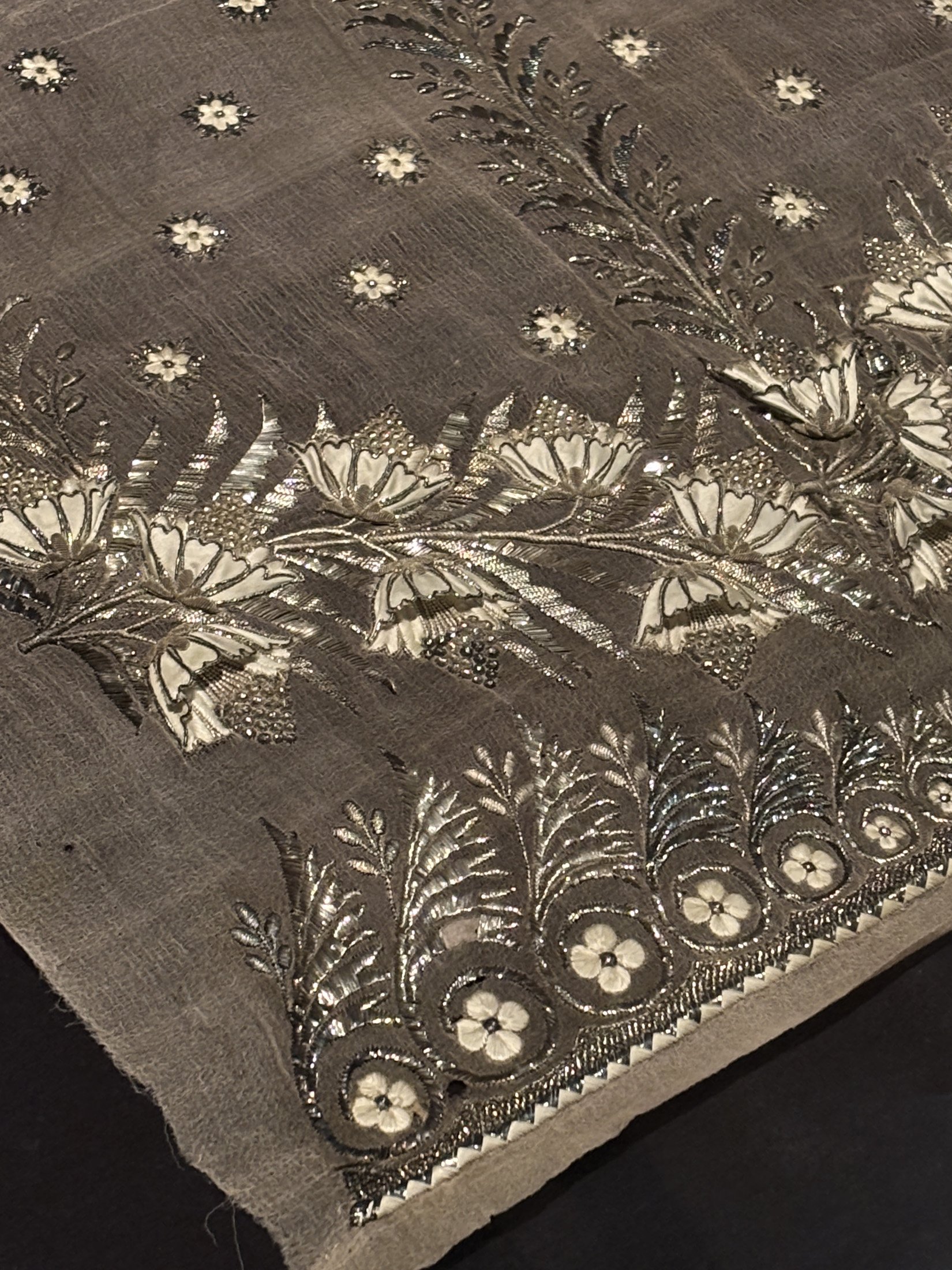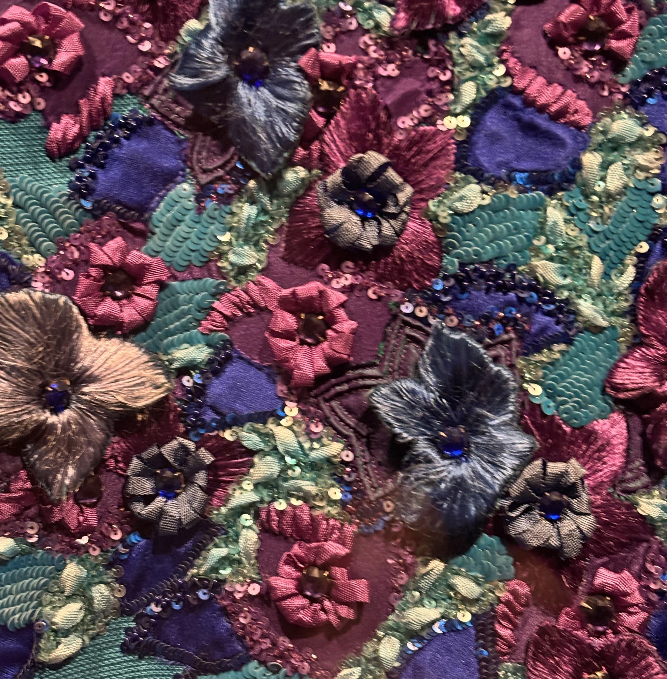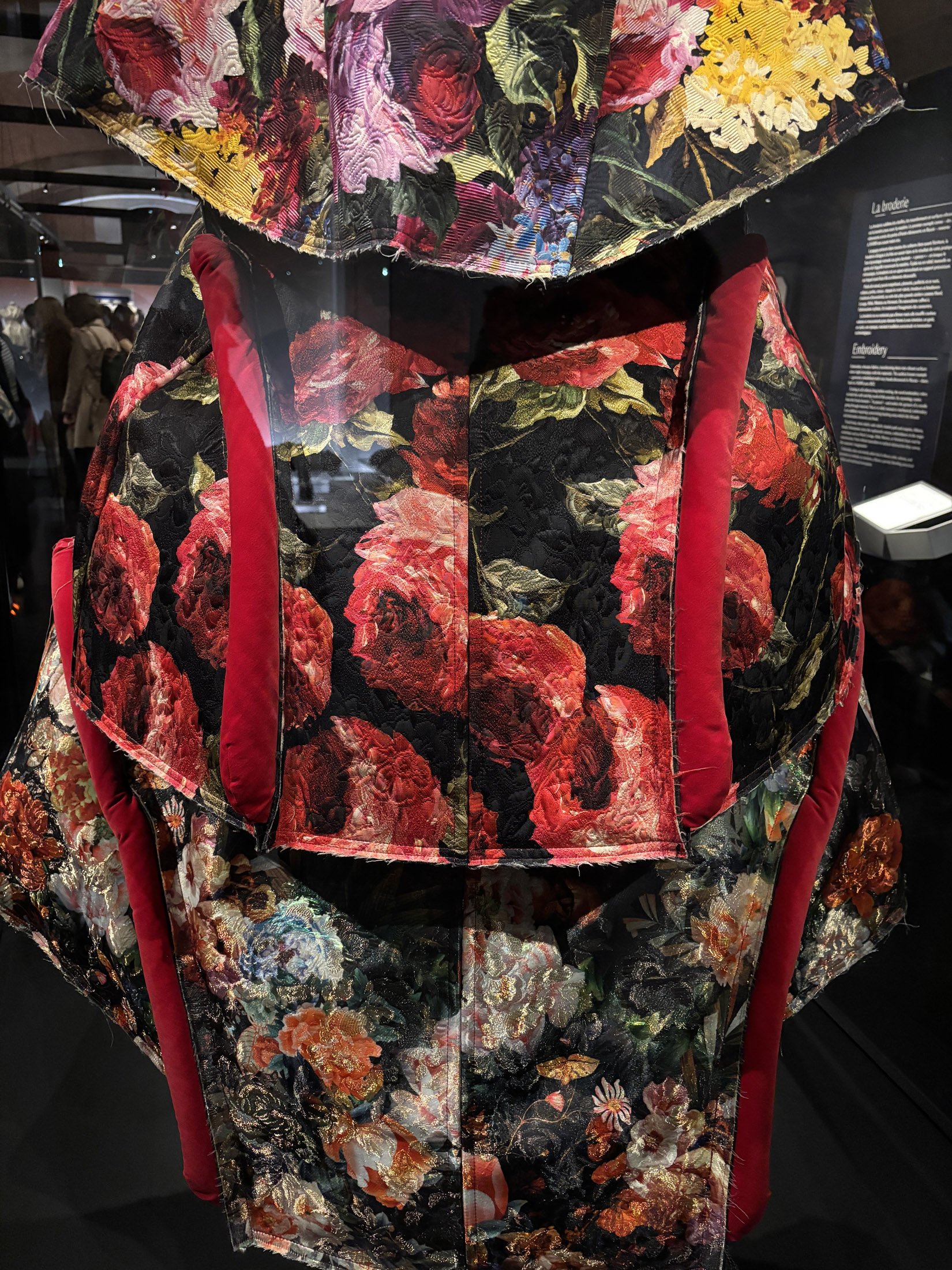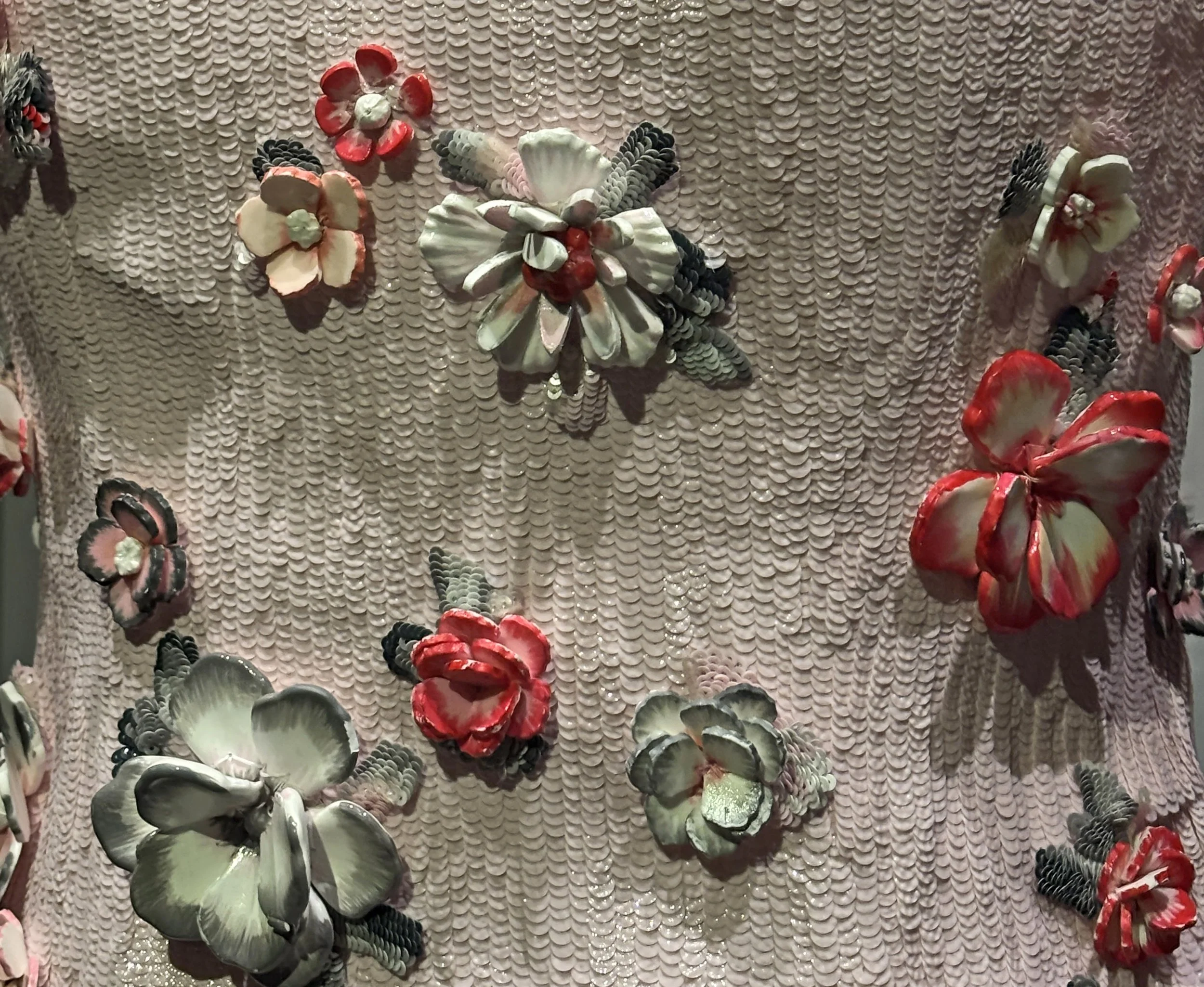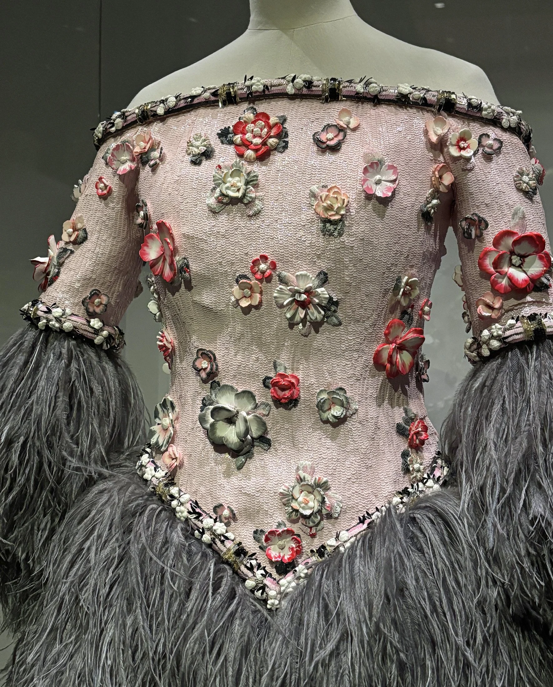 Le thème des fleurs est à l’honneur, dès l’entrée on est éblouit par cette robe Chanel (Lagerfeld 2019), par le travail de broderie, de plumasserie et de création de fleurs.