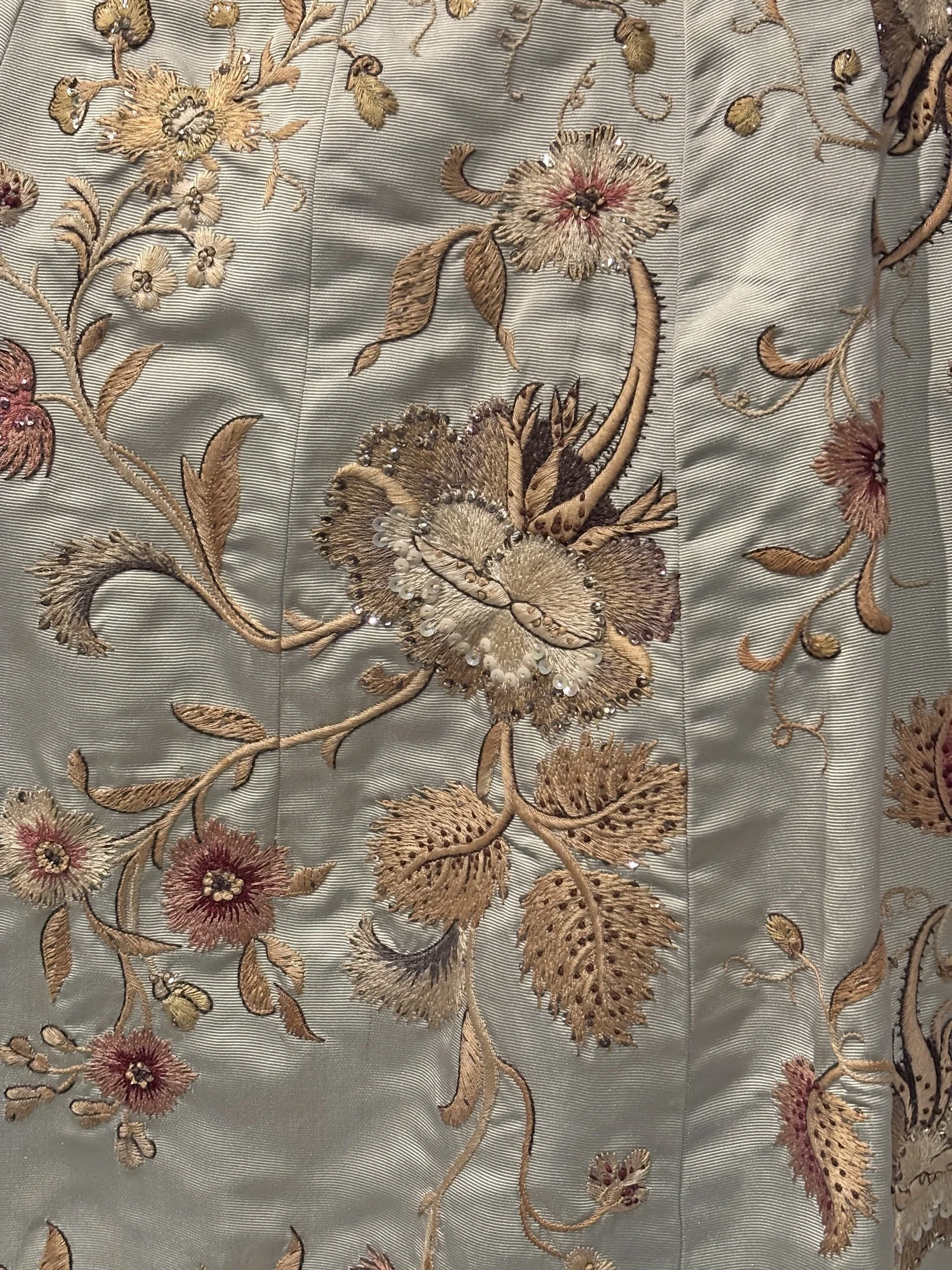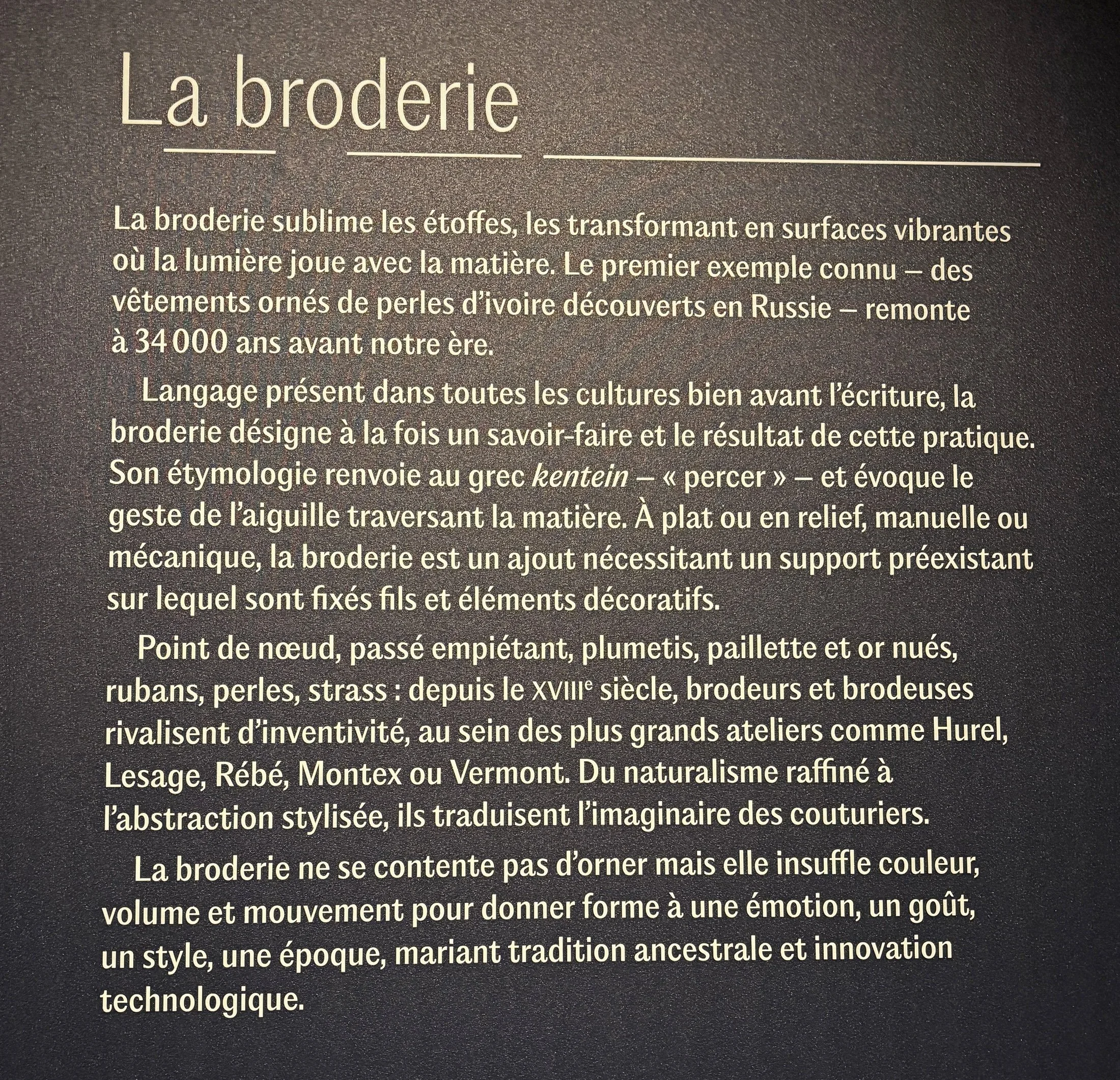 Le début de l’expo nous plonge dans la broderie et présente des tenues historiques de toute beauté, inspirées des dessins asiatiques.