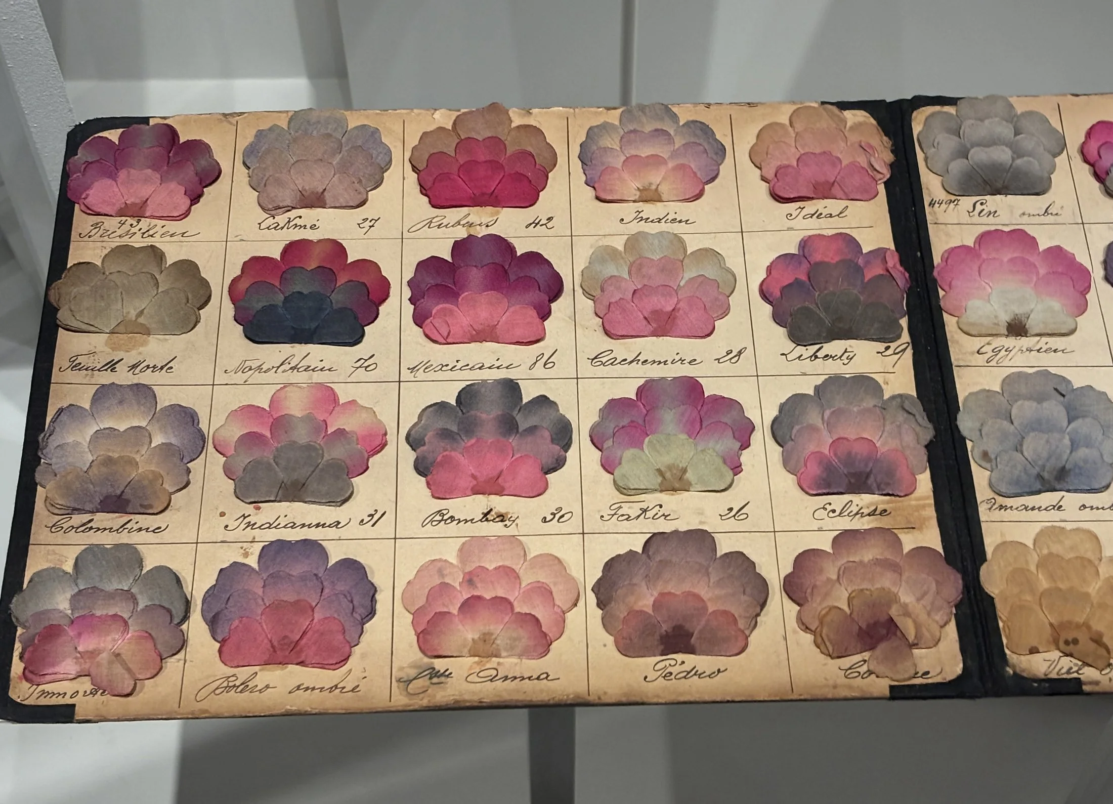 Quand on observe les nuanciers des pétales en tissus (env 1920), teints à la main, on se dit bien que ce sont des artistes qui créent ces embellissements!