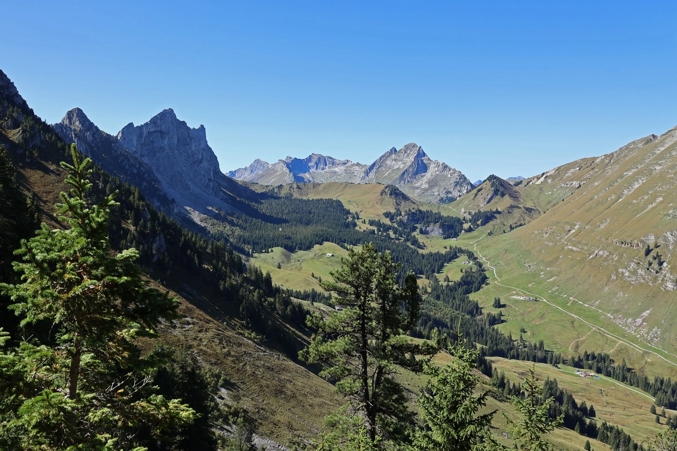 De ce côté-ci des Gastlosen, la végétation est différente: les parois s’élèvent de manière moins abrupte et la forêt grimpe plus haut. Les rochers sont plus à l’ombre.